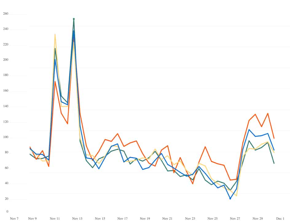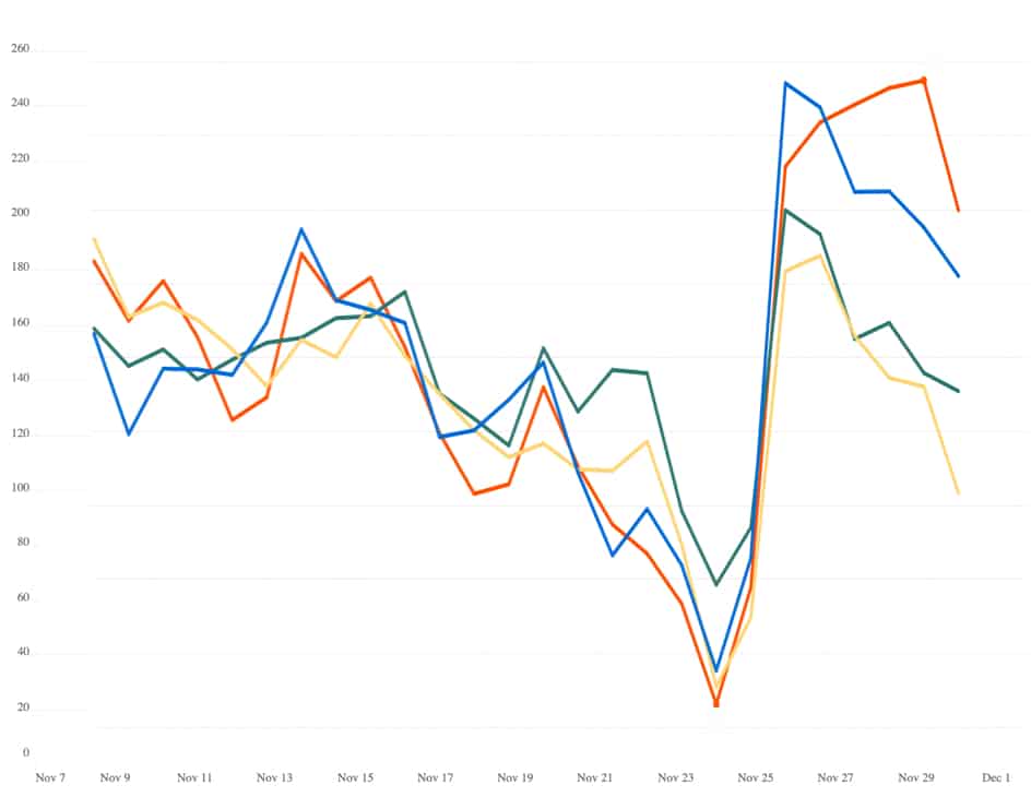Las tendencias están cambiando más rápido que nunca. En Criteo realizamos un constante seguimiento de lo que sucede en el mercado, para ayudarte a tomar decisiones fundamentadas y entender datos de consumo en ropa, electrónica de consumo, comestibles, artículos para el hogar y muchos otros productos.